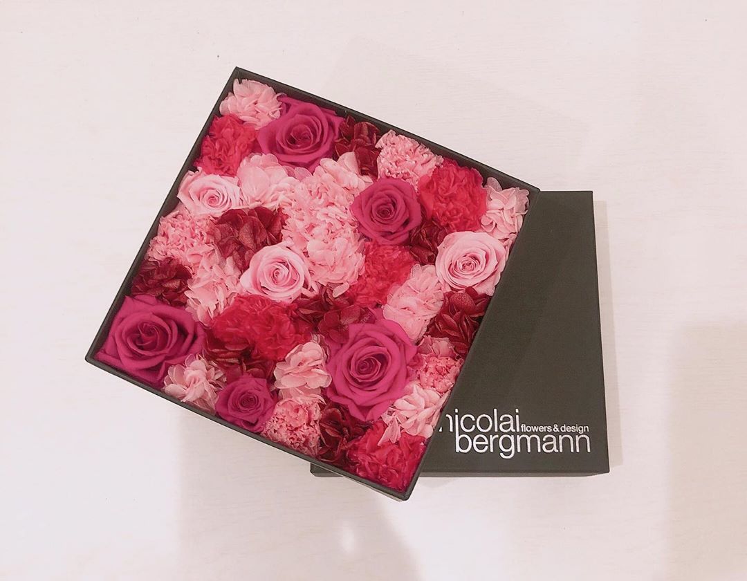 nicolaibergmannのフラワーボックス🌸 お誕生日にもらいました🎁❤️ このお店に立ち寄る度に いつかこれお部屋に飾りたいな🥺 って思ってたの🥰🍒 このフラワーボックス2年間持つみたい🐻 2年後は28歳だ、早い!😂 枯れるまでずっとずっと大切にしよう💐 #riho_abiru#あびる李帆#阿比留李帆Abiru RihoRiho Abiru