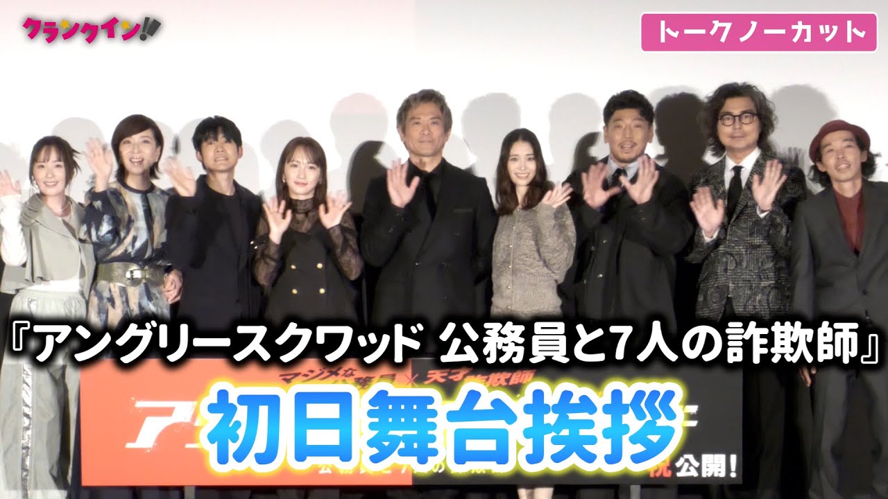 映画『アングリースクワッド 公務員と7人の詐欺師』初日舞台挨拶が行われ、内野聖陽、川栄李奈、森川葵、後藤剛範、上川周作、鈴木聖奈、真矢ミキ、小澤征悦、上田慎一郎監督が登壇した。