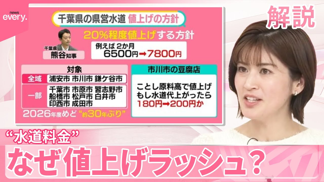 「県営の上水道が使われている浦安市・市川市・鎌ケ谷市の全域と、千葉市・市原市などの一部地域が対象です。この値上げは2026年度をめどに行う方針で、決定すれば約30年ぶりの値上げとなります」