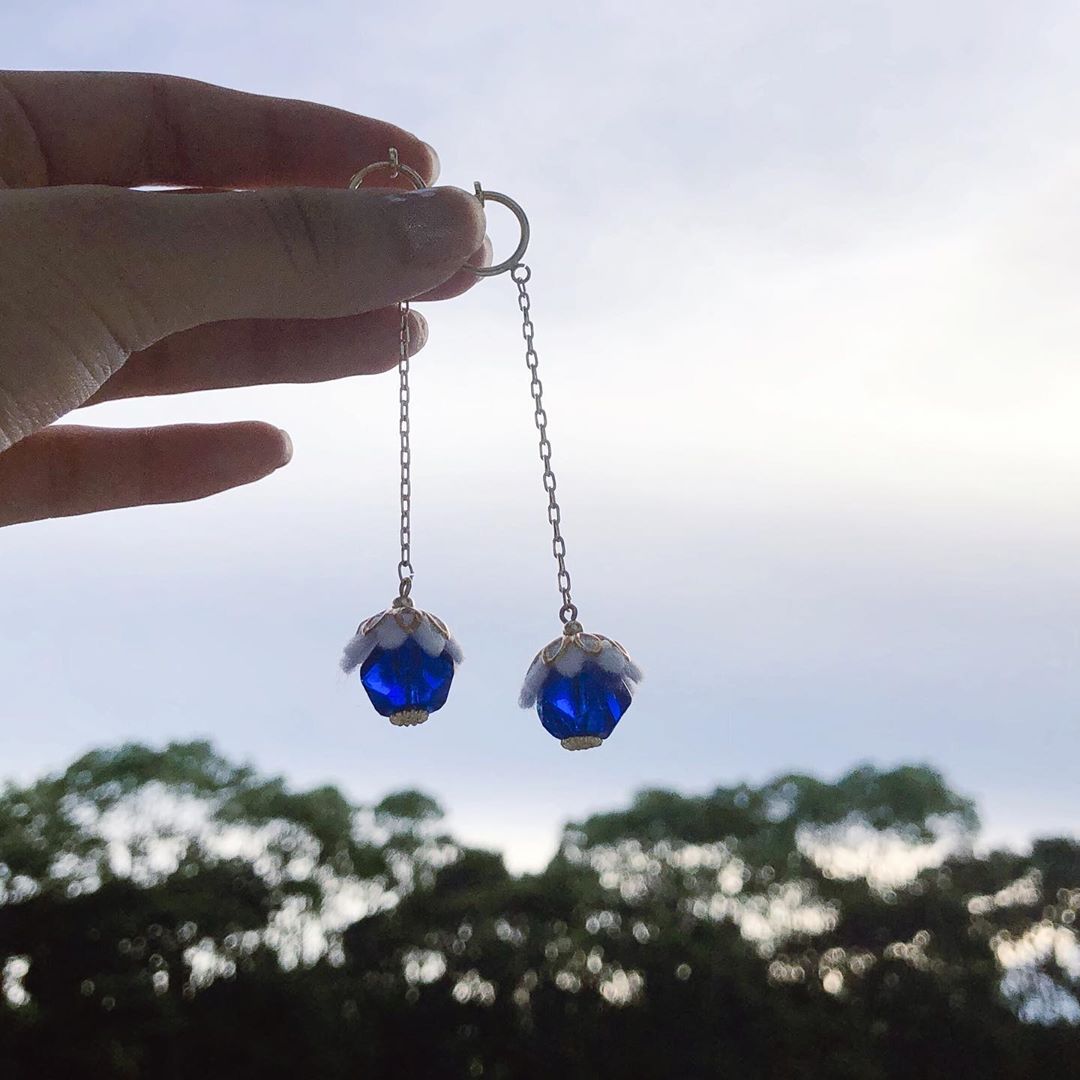 透明感。 大きなブルーのビーズは ボタン展で一目惚れしたもの。 夏の揺れるイヤリングは 反則だよね!なんて考えながら作ったんだ。 女の子の特権…✨ * * 日差しにかざした時の透明感が夏っぽい * * #ハンドメイドイヤリング #ハンドメイドアクセサリー #フェルトアクセサリー #浴衣アクセサリー #浴衣 #seina_fukuoka#福岡聖菜akb48Fukuoka SeinaSeina Fukuokaハンドメイドアクセサリーハンドメイドイヤリングフェルトアクセサリー浴衣浴衣アクセサリー