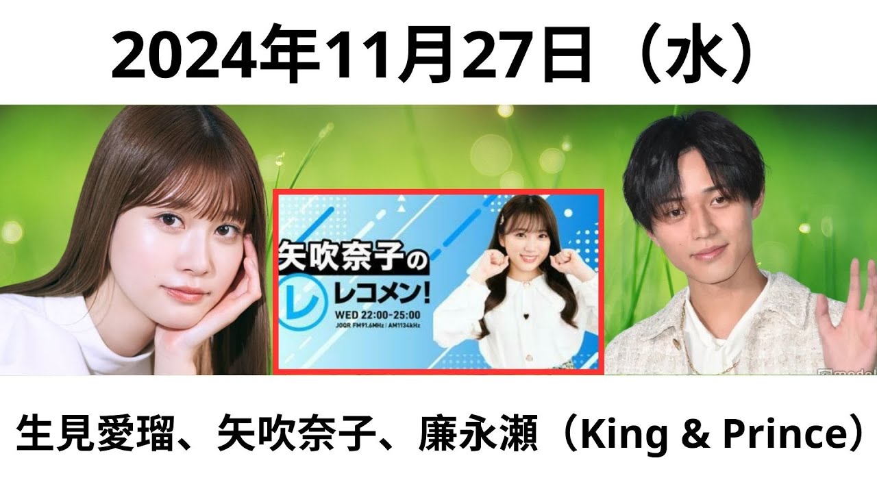 2024年11月27日(水)レコメン! 矢吹奈子、生見愛瑠、永瀬廉(King & Prince)#矢吹奈子 #生見愛瑠 #ジャニーズ #永瀬廉