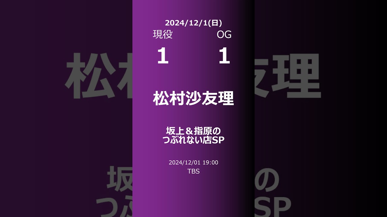 【明日の乃木坂】現役・OG 2024/12/01 #shorts #乃木坂46 【番組出演】 2024/12/01の乃木坂46と乃木坂46OGのTV出演情報です #乃木坂46 #乃木坂46OG 黒見明香 松村沙友理 市來玲奈 斎藤ちはる サンデーPUSHスポーツ 乃木坂工事中 意外!新選抜の衝撃回答連発 意外な一面が!? 坂上&指原のつぶれない店SP 誰も知らない明石家さんま テラサってる? (2024/11/30) nogizakanogizaka46乃木坂乃木坂46市來玲奈 Write A Commentコメントを投稿するにはログインしてください。
