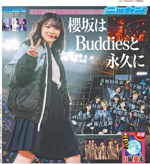 日刊スポーツ新聞社では、櫻坂46「10th Single BACKS LIVE!!」が開催される今日12月4日と5日に、11月23日に櫻坂46「4th YEAR ANNIVERSARY LIVE」ZOZOマリンスタジアム公演を記念して制作した特別版と、通販限定で販売した11月25日付の特別編集紙面(日刊スポーツショッピング、Amazonで販売中)を、NewDays海浜幕張中央店で販売します。ぜひお立ち寄りください。