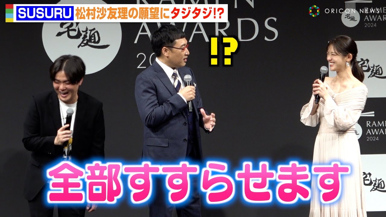 ラーメンYouTuber・SUSURU、松村沙友理の願望にタジタジ!?突然のコラボ要求に会場爆笑「全部すすらせます」 『Takumen Ramen Awards 2024 授賞式』