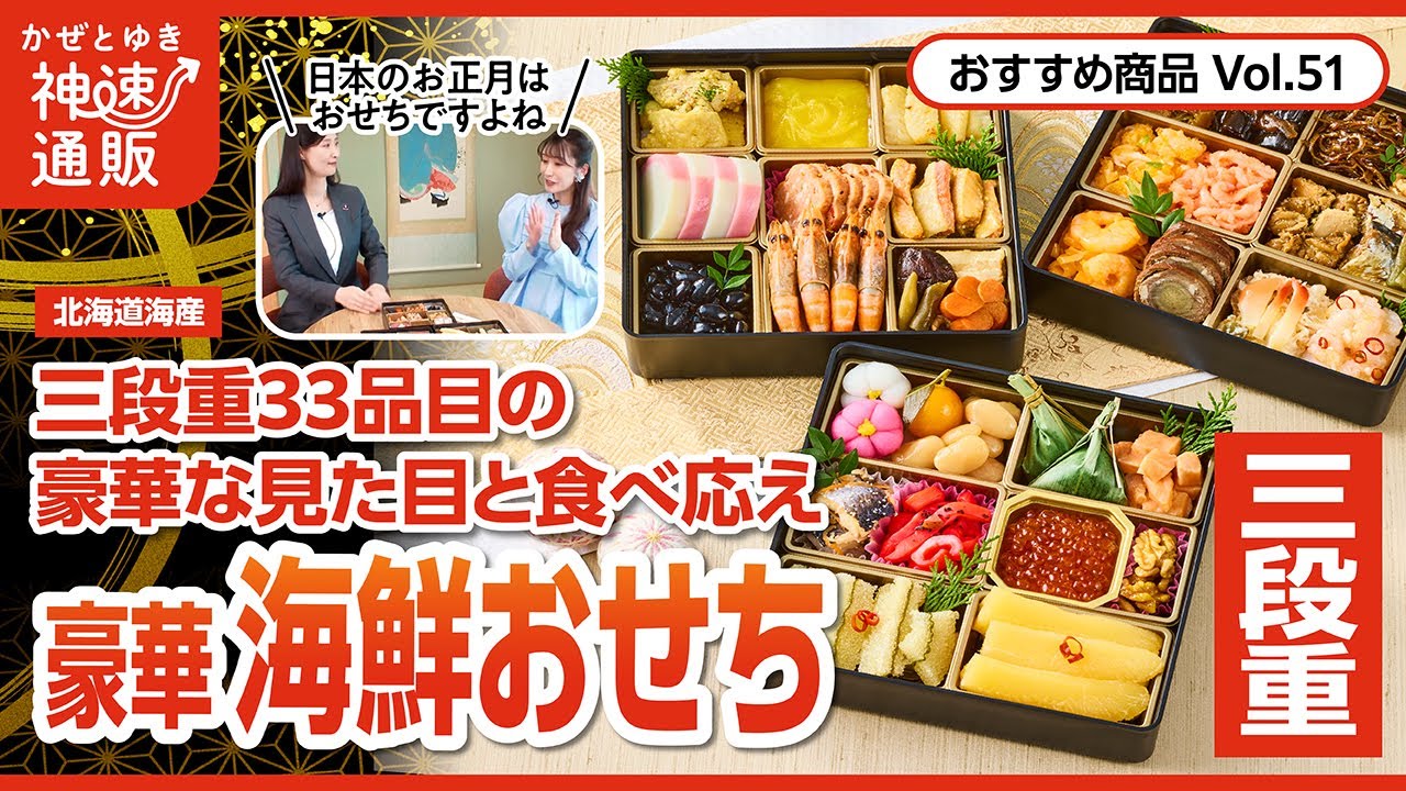 【かぜとゆき通販】お正月はこれ 豪華 海鮮おせち三段重