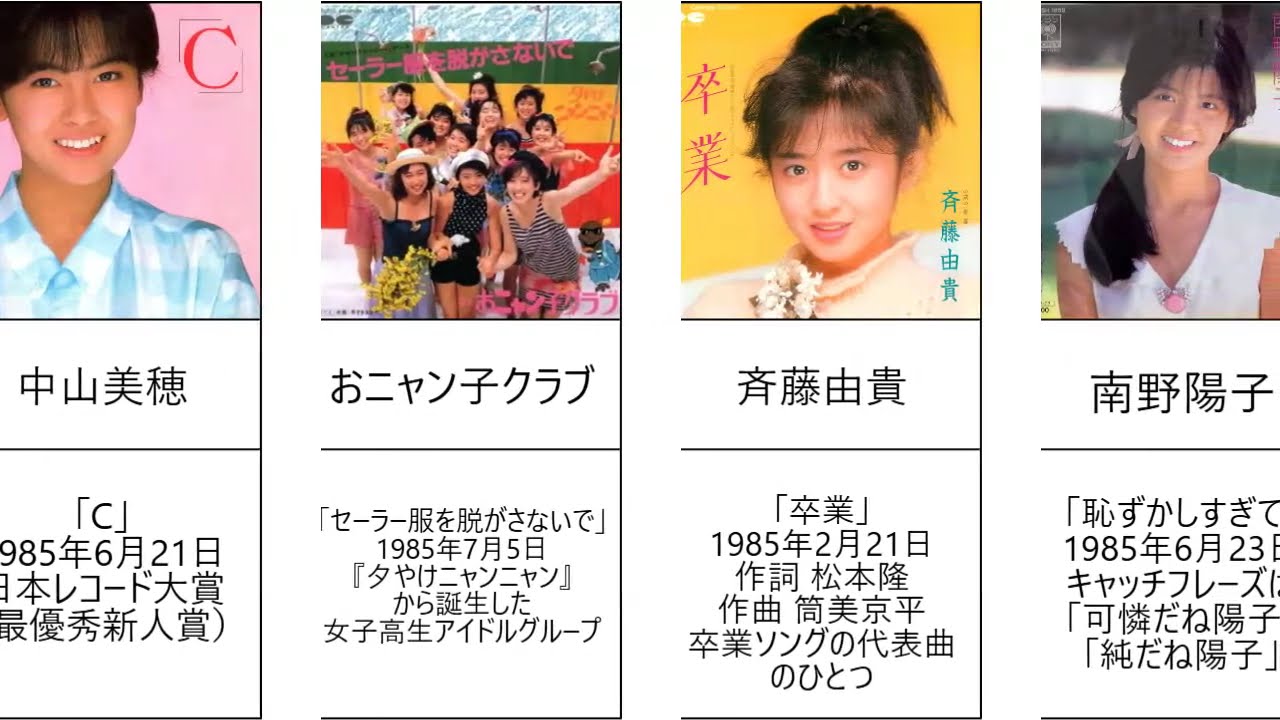 #中山美穂 #おニャン子クラブ #斉藤由貴 #南野陽子 #本田美奈子