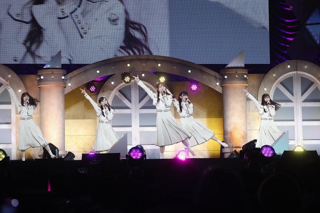 バラエティーパートを終えると、いよいよライブパートへ。37thシングル選抜メンバーが最新曲「歩道橋」を披露すると、冨里奈央をセンターに据えた37thシングルアンダーメンバーが「それまでの猶予」で、会場の熱量をさらに高める。そして、全メンバーがステージに登場すると「チートデイ」、梅澤美波&賀喜遥香のダブルセンターによる「インフルエンサー」、久保史緒里の儚げなソロダンスをフィーチャーした「Sing Out!」と、ライブの人気曲が連発されていく。最後は遠藤を中心に据え「きっかけ」を披露し、ライブパートを締め括った。