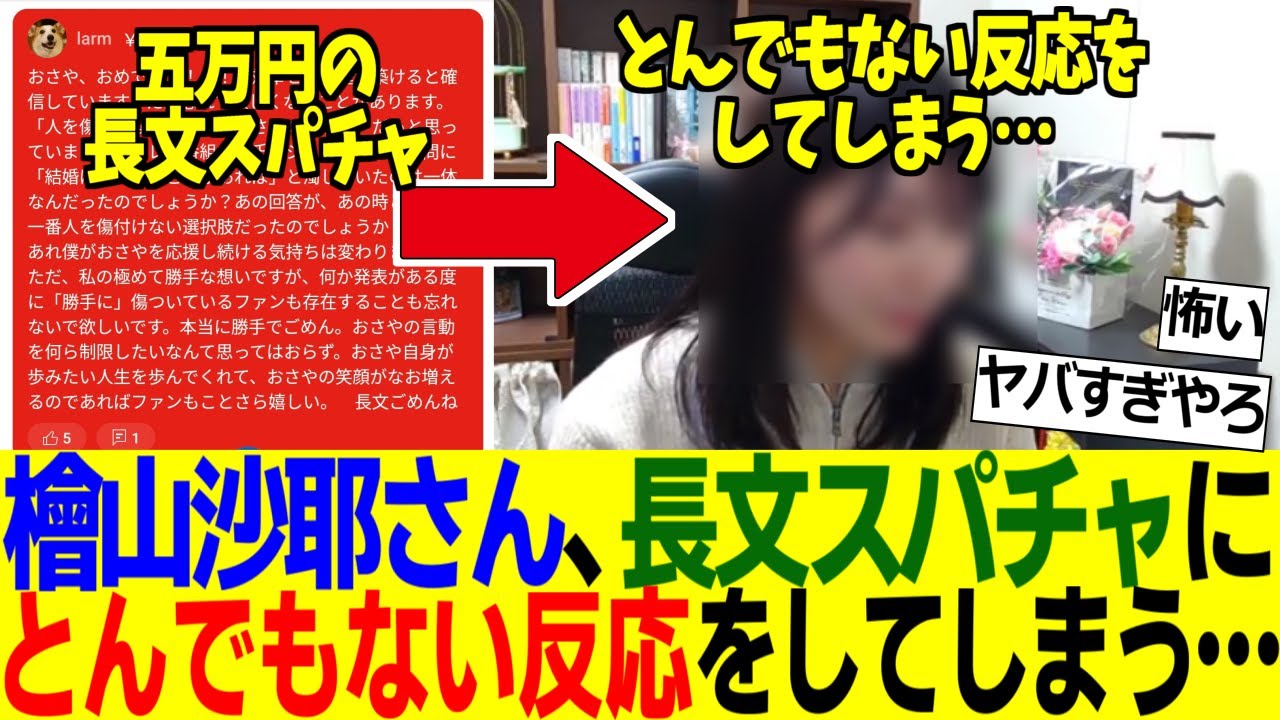 ファンクラブ開設直後に結婚報道をされた檜山沙耶さん、ファンの5万円長文お気持ちスパチャにとんでもない反応をしてしまう【2ch反応集】