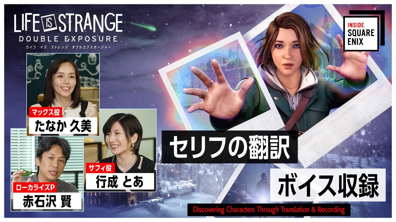 今回は、「ライフ イズ ストレンジ」シリーズの最新作『ライフ イズ ストレンジ ダブルエクスポージャー』のセリフの翻訳やボイス収録に焦点を当て、ローカライズ プロデューサーの赤石沢 賢をはじめ、マックス役のたなか 久美さん、サフィ役の行成 とあさんをお招きしてインタビューを行いました。