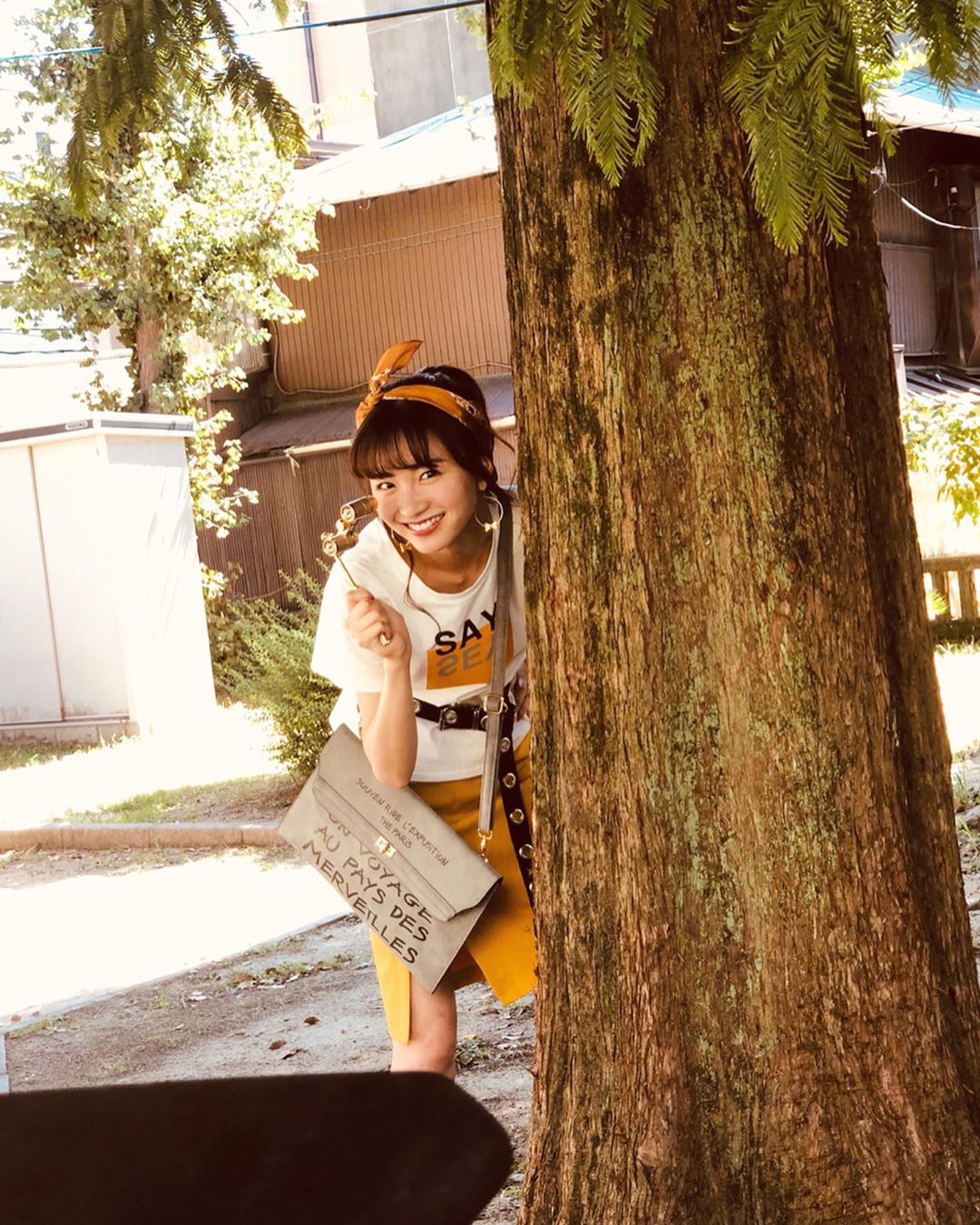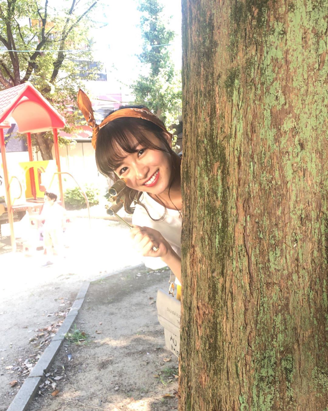 ひょっこり #猪又進と8人の喪女 撮影🌿 皆さん三連休は何しましたか〜? #猪又進と8人の喪女 #木からひょっこり #オペラグラスで #覗いております #アカリ #sae_okazaki#岡崎紗絵Okazaki SaeSae Okazakiあがりオペラグラスで木からひょっこり猪又進と8人の喪女覗いております