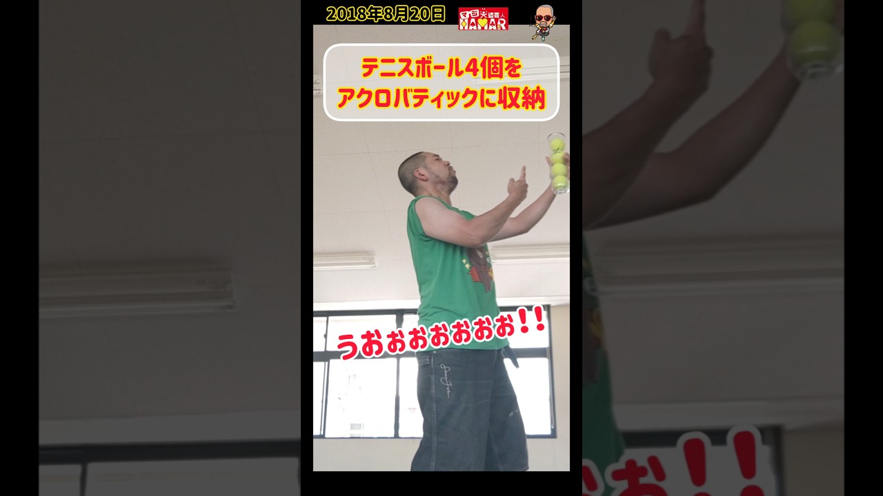 テニスボール4個をアクロバティックに収納するおっさん