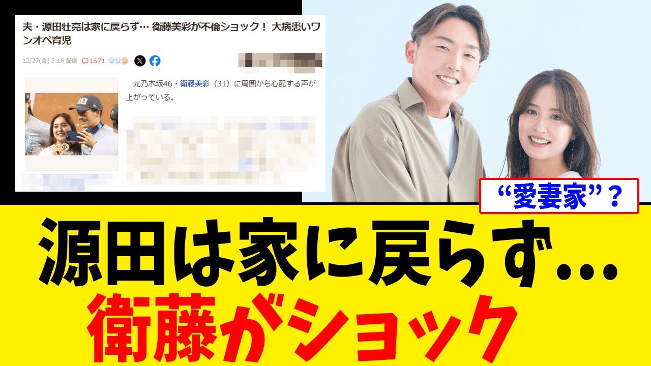 源田壮亮は家に戻らず… 衛藤美彩 “愛妻家”とは何ですか?【2chスレ】【5chスレ】
