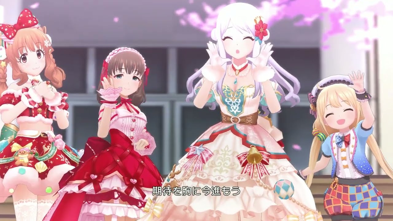 Continuing my Anzukin X-mas MVs, this 4th song is called “Future Compass” that’s been released during its token event from 3/20-3/30. The song is originally performed by Hijiri Mochizuki, Mayu Sakuma, Chieri “Archangel Chieriel/Chieriel” Ogata, Aiko Takamori, and Yoshino “Yoshinon” Yorita forming the group “ephemera” meaning short-lived thing. Eve Santaclaus(Her, Hijiri, and Mayu forms the unit “Sweet Bloody Mary Bell), Kirari “Kirarin” Moroboshi, and Anzu Futaba(Anzu and Kirarin form the duo “Ankira or HappyHappyTwin) joins in with Hijiri singing this song. The song talks about the girls giving their last thoughts before they depart for their graduation as 3rd year students during the spring time. Ironic that the video was published in Winter when the setting of the MV took place in Spring. I hope everyone has a merry Anzukin Christmas, wishes Hijiri a happy Anzukin Birthday and wish the girls good luck outside of school! Kyaha!*