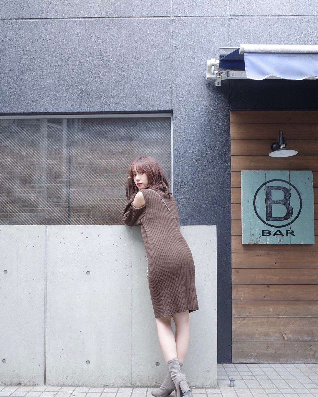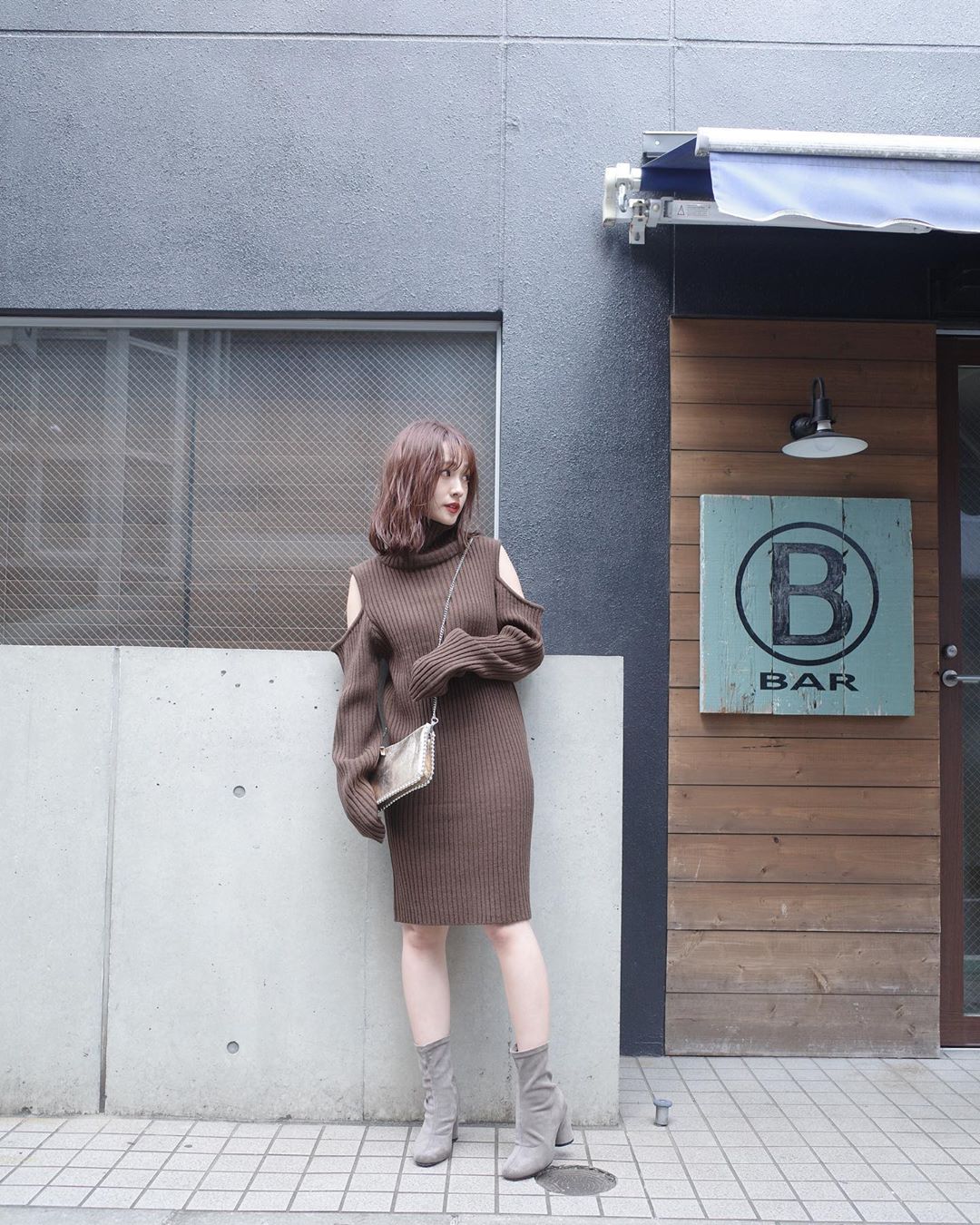 オープンショルダーニットワンピです☺︎