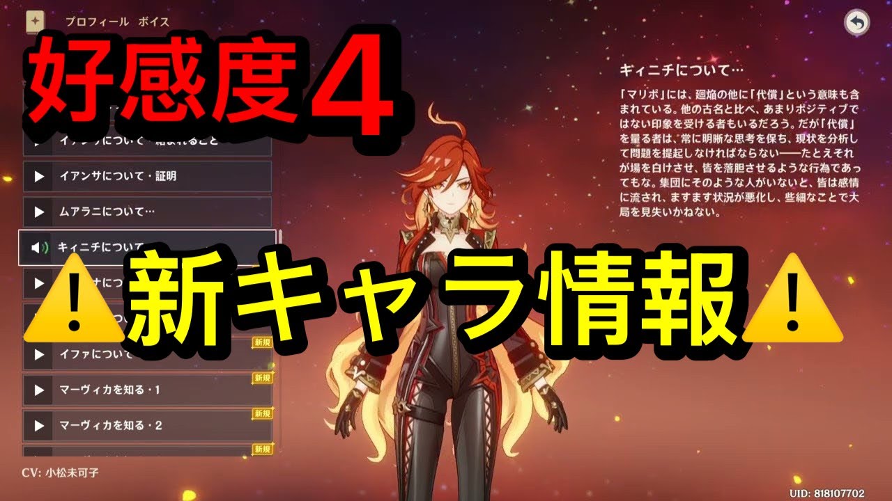 #原神#Genshin#マーヴィカ #ボイス#セリフ#好感度#小松未可子#プロフィール#ver5.3#genshinimpact #genshinguide #hoyocreators #カチーナ #原神攻略 #原神ガイド#原神新情報 #ヴァレサ#シトラリ#イアンサ#イファ#genshintrailer #ムアラニ#カチーナ#キィニチ#チャスカ#キャラ攻略#mavuika #玛薇卡