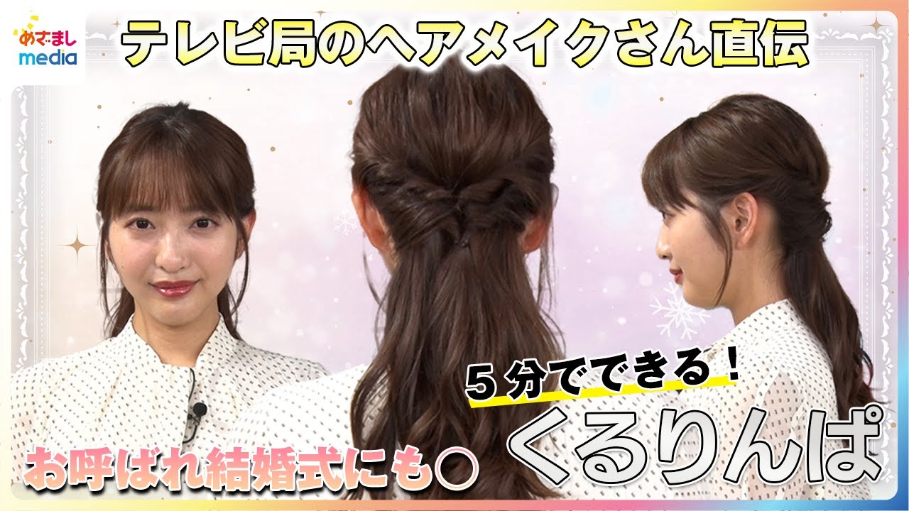 5分で出来る「くるりんぱ」テレビ局のヘアメイクさん直伝!お呼ばれ結婚式にもオススメの時短アレンジに藤本万梨乃アナが挑戦 トップを綺麗に!ボリュームを出す“3つの引き出し術”も解説