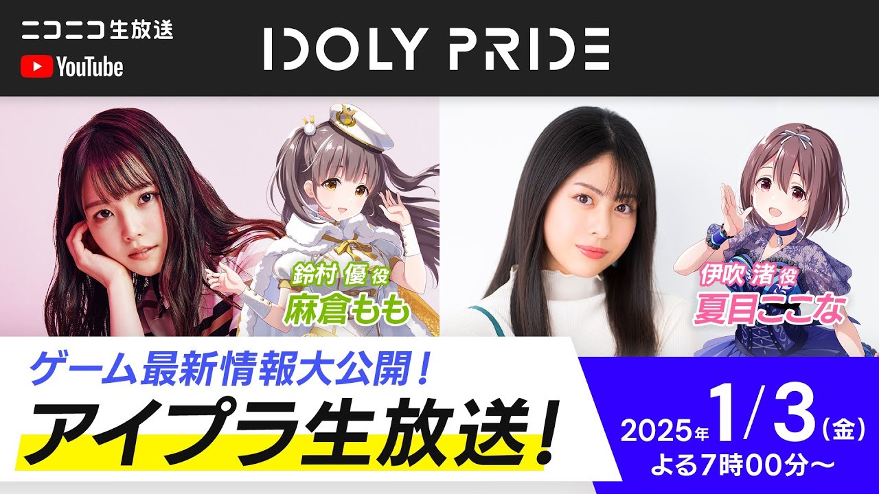 【1/3 19:00〜】アイプラ生放送 ■出演:鈴村優役/麻倉もも、伊吹渚役/夏目ここな【アイプラ】 スマホゲーム「IDOLY PRIDE」の生番組が配信!! 鈴村優役の麻倉ももさん、伊吹渚役の夏目ここなさんがゲームの最新情報をお届けいたします!! ※本日の配信は収録でお届けします。 ■出演者 麻倉もも(鈴村優役) 夏目ここな(伊吹渚役) #アイプラ #idolypride #リズCAAnimationfemale voice actorsgameIDOLY PRIDEidolyprideKZLerchelivetuneLizNoirMONACAQ-MHzQPQP:flapperQualiArtsROUND TABLETRINITYAiLETrySailTWEEDEESvoice actorsvoice actressesWicky.Recordingsアイドリープライドアイドルアイプラアニメオーイシマサヨシクオリアーツゲームさかいゆうスタジオ雲雀ストレートエッジスフィアトリエルトリニティーエイルミュージックレインミューレやしきんラルケリズノア一ノ瀬怜井川葵伊吹渚佐々木奈緒佐伯遙子兵藤雫北川勝利声優夏川椎菜夏目ここな大石昌良天動瑠依奥山すみれ安達薫宮沢小春寿美菜子小美山愛川咲さくら成宮すず戸松遥日向もか早坂芽衣星見プロ橘美來水澄佳希沖井礼二漫画田中秀和白石千紗白石沙季相川奏多神崎莉央結城萌子美人声優花田十輝菅野真衣豊崎愛生赤崎こころ鈴村優長瀬琴乃雨宮天首藤志奈高垣彩陽高尾奏音麻倉もも 4 Comments @MaryamZaman-2013 1年 ago 麻倉ももちゃんが大ーーーーーーーーーーーーーーーーーーーー好き!!! @額賀由孝 1年 ago もちょの可愛さが半端ないのだが🥰京都弁ではんなりとした癒しが無くても、もちょの可愛さで癒されるね🥰 @RangerSaie 1年 ago 埋 め 込 ま れ た @angel20361999 1年 ago 3人より2人のほうが、推し(麻倉もも)が映る(喋る)時間が長くなるので嬉しい。 Write A Commentコメントを投稿するにはログインしてください。