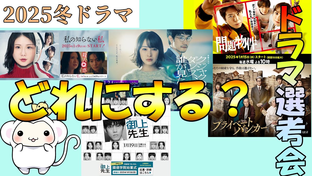 2025年冬【1月の新ドラマ】選考会雑談会もん☆ドラマ考察はどれにするかなど決めるもん☆
