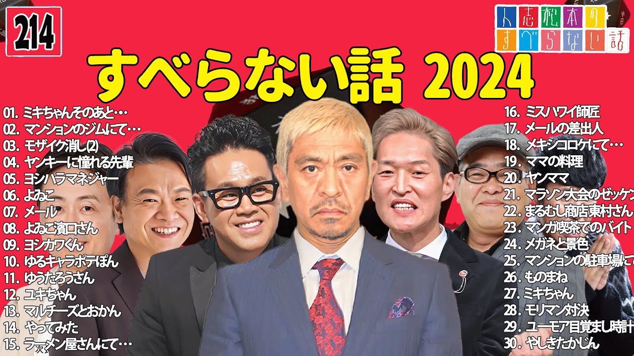 【広告なし】人志松本のすべらない話 人気芸人フリートーク 面白い話 まとめ #214 【作業用・睡眠用・聞き流し】 人は誰も1つはすべらない話を持っており、そしてそれは誰が何度聞いても面白いものである。 プレーヤーの名前が書かれているサイコロをふり、出た目の人が面白い話をするだけでお送りするシンプルな番組。 「すべらない話」BMG 2024 #すべらない話 #すべらない話2024 #ダウンタウンなう #松本人志 Underground IdolUnderground Idol GroupsUnderground Idols吉川友 地下アイドル地下アイドル Write A Commentコメントを投稿するにはログインしてください。