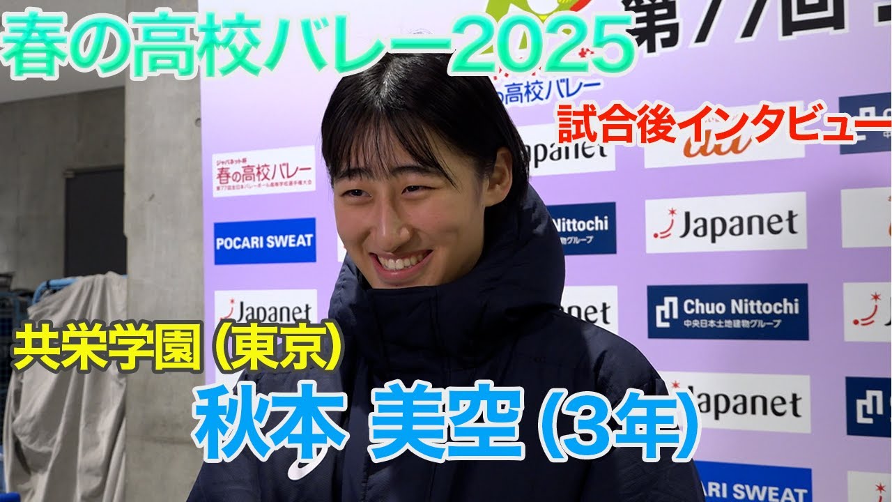 【春の高校バレー2025 試合後インタビュー】共栄学園(東京)秋本美空(3年) 1月5日に開幕したジャパネット杯春の高校バレー第77回全日本バレーボール高等学校選手権大会。 昨年度、高校生ながら日本代表に選出された秋本美空選手(共栄学園3年)。初戦を終えてのインタビューをお届けします。 大会開催期間 2025年1月5日(日)、6日(月)、7日(火)、11日(土)、12日(日) nogizakanogizaka46乃木坂乃木坂46大和里菜 Write A Commentコメントを投稿するにはログインしてください。