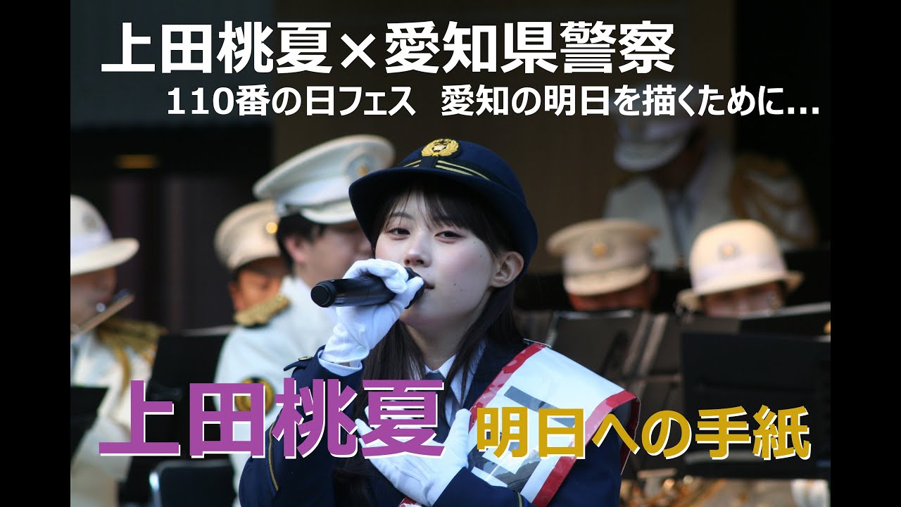 この動画は、上田桃夏さんが中警察署の一日警察署長として参加した「110番の日フェス 愛知の明日を描くために…」で披露したカバー曲「明日への手紙」のライブ動画です。