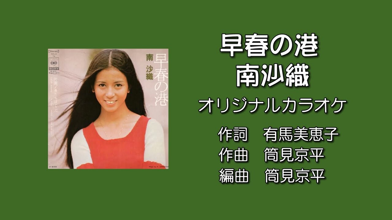 「早春の港」南沙織 オリジナルカラオケ 「早春の港」南沙織 オリジナルカラオケ 1973年1月21日リリース 作詞:有馬三恵子 作曲:筒美京平 編曲:筒美京平 すぎやまこういち「サウンド・イン・ナウ」1973年放送 idolアイドル南沙織 Write A Commentコメントを投稿するにはログインしてください。