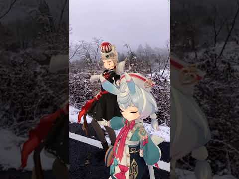 【雪の中の メッセージ 1/2】降り出した雪に 原神のリネットたちが雪雲の下で「メッセージ」【原神 AR ダンス】