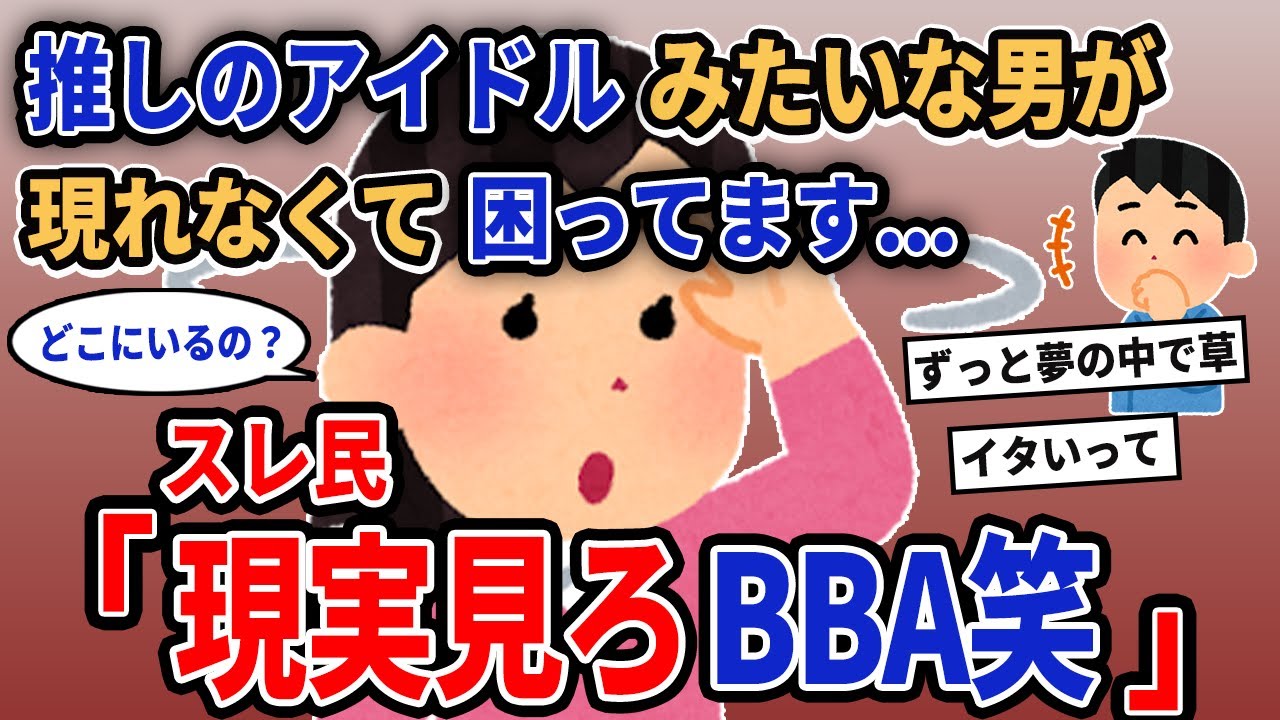 【報告者キチ】「推しのアイドルみたいな男が現れなくて困ってます…」→スレ民「現実見ろBBA」【2chゆっくり解説】