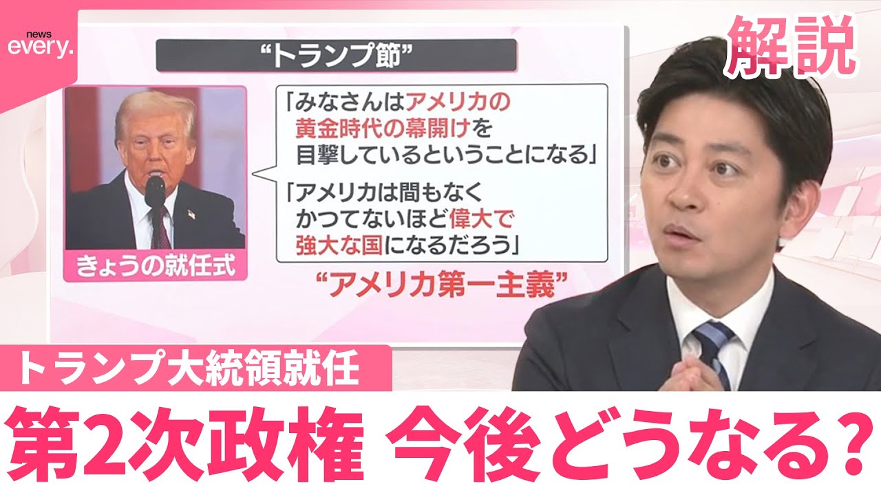 アメリカの第47代大統領にドナルド・トランプ氏が就任しました。トランプ大統領の第2次政権が今後どうなっていくのか、日本テレビ国際部の小林史部長とともに詳しく解説します。