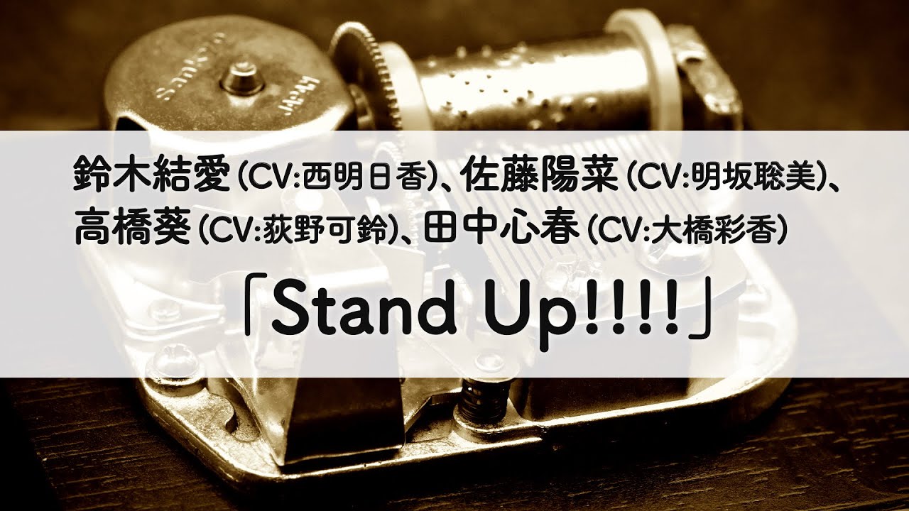 鈴木結愛 (CV:西明日香)、佐藤陽菜 (CV:明坂聡美)、高橋葵 (CV:荻野可鈴)、田中心春 (CV:大橋彩香) 「Stand Up!!!!」オルゴールアレンジ