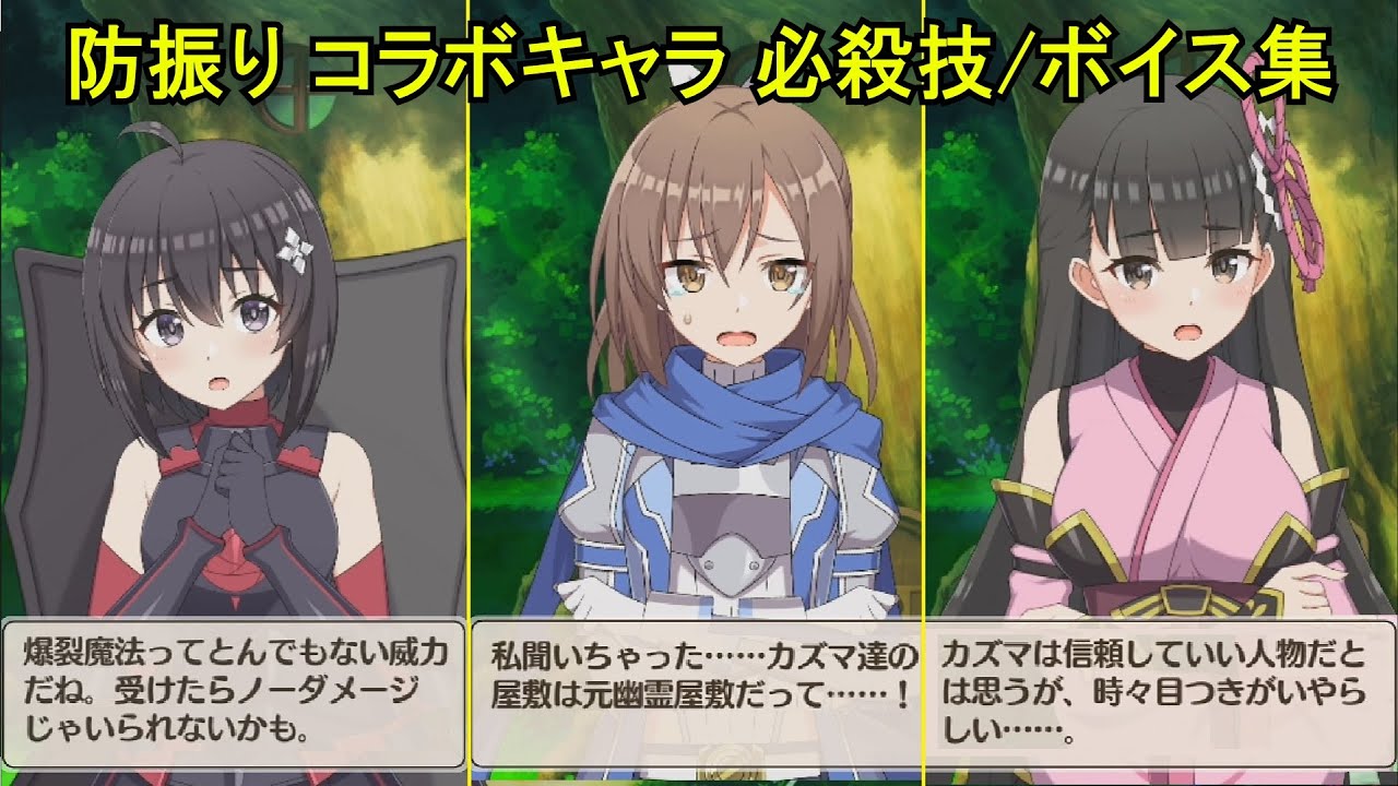 防振りのコラボキャラ:メイプル、サリー、カスミ の必殺技/ボイス集/イラストの動画です。 再利用したい場合に備えて、ボイス集の部分にはBGMを付けていません。