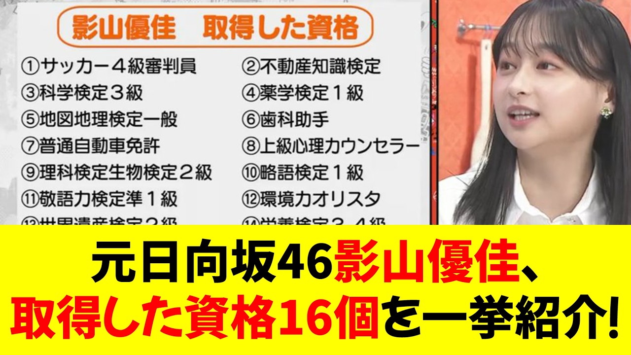 「勉強がしたかった」元日向坂46影山優佳(22)、取得した資格16個を一挙紹介! ⭐︎ 元日向坂46影山優佳が取得した驚異の資格16個を大公開!努力の軌跡を深掘り! #影山優佳 #日向坂46 #資格取得 #若手タレント#話題の人物2ch2ちゃんねる5ch5ちゃんねるidolアイドルゴシップスキャンダルなんj元アイドル努力家勉強熱心反応集多才学びの軌跡影山優佳日向坂46有名人自己成長芸能ニュース芸能界資格16個資格コレクター資格取得 Write A Commentコメントを投稿するにはログインしてください。