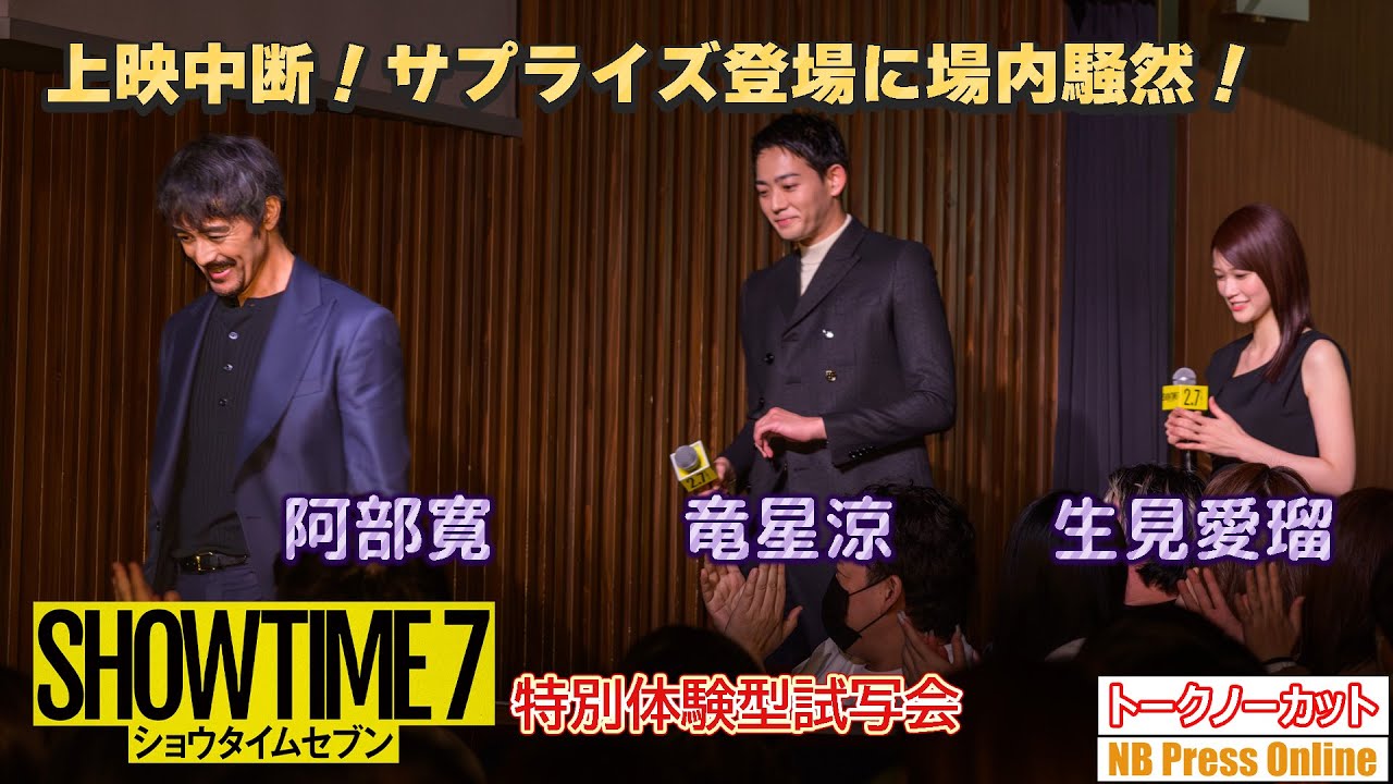2025年1月27日、秋葉原UDXシアターにて、映画『ショウタイムセブン』公開直前イベント‐特別体験型試写会‐が行われ、阿部寛、竜星涼、生見愛瑠、渡辺一貴監督がサプライズ登壇した。