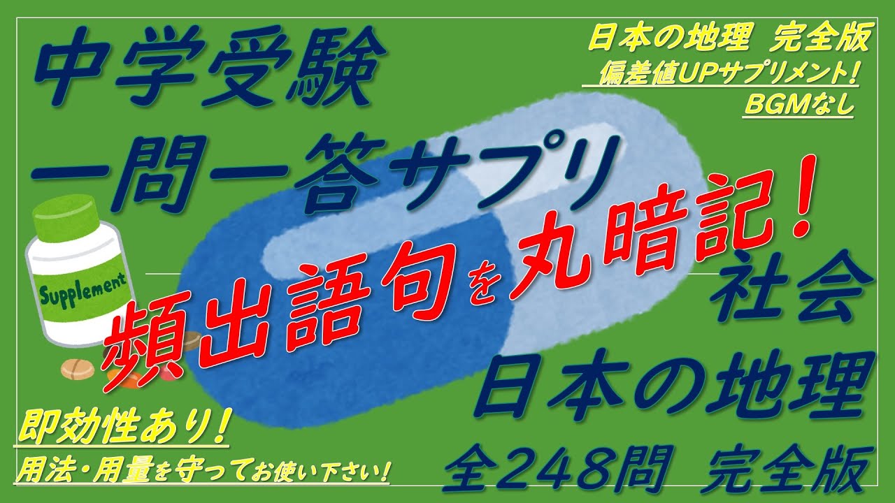 中学受験地理の重要事項を一問一答で覚える!頻出事項を厳選してまとめた、聞き流しもできる一問一答動画です!短時間で頻出語句を学習できて家庭学習に最適です!