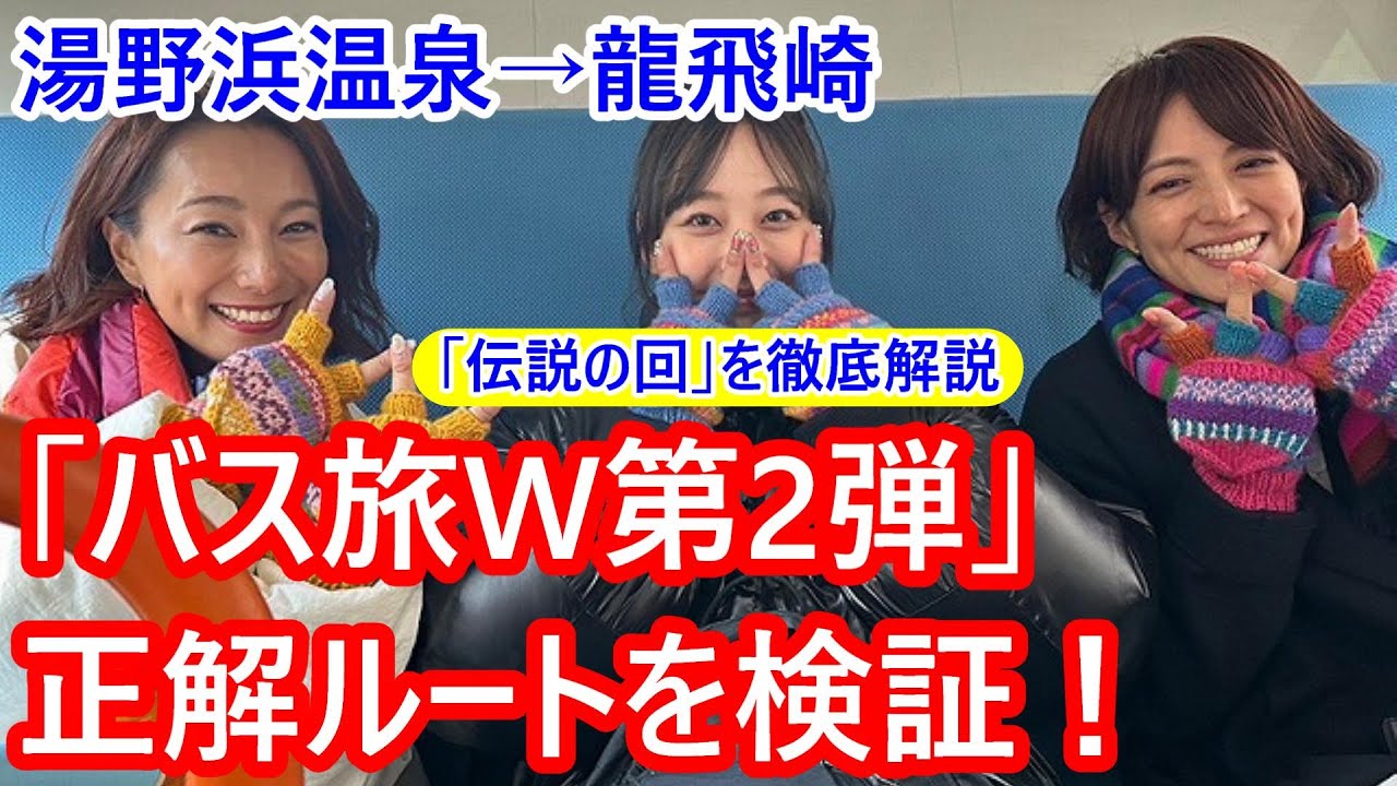 テレビ東京系列「ローカル路線バス乗り継ぎの旅W」の第2弾が放送されました。第1弾に出演した赤江珠緒、三船美佳の二人はそのままで、新たにたけうちほのか 迎えました。