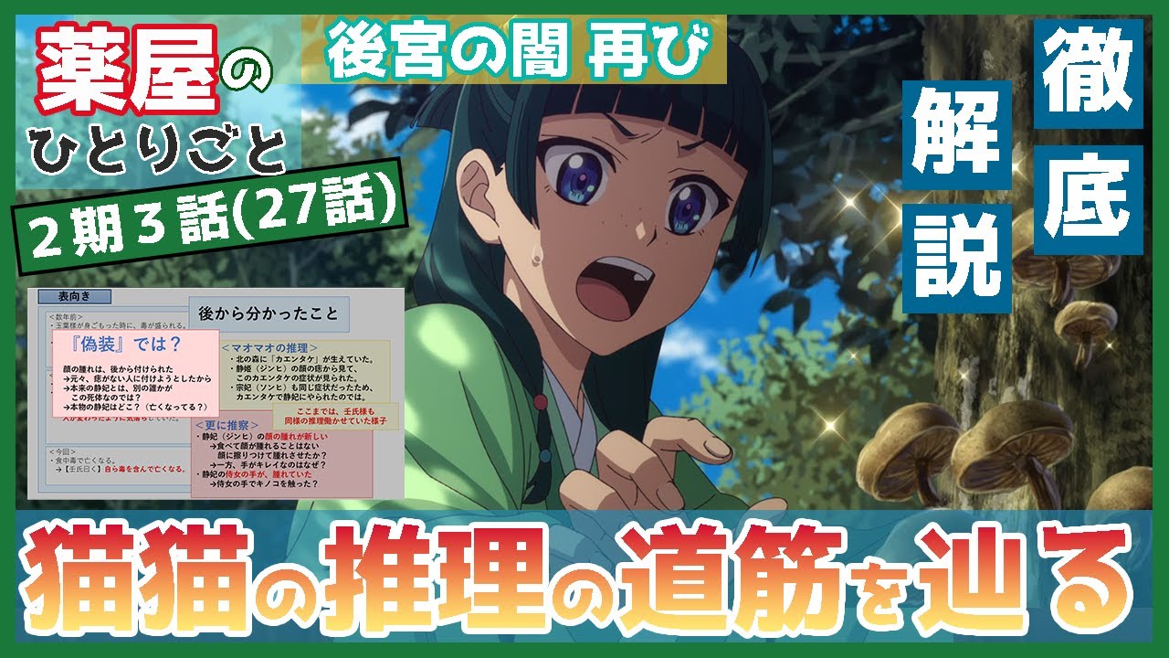 【薬屋】2期3話(第27話) キノコ事件の全貌 猫猫が見つけた推理の道筋を解説 三種のキノコ 【薬屋のひとりごと 第2期】