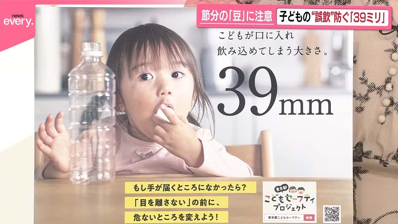 今週末は節分ですが、小さなお子さんがいる環境では、豆まきをするときに注意しておきたいことがあります。「news every.」の桐谷美玲キャスターが「“誤飲”防ぐ『39ミリ』」について解説します。