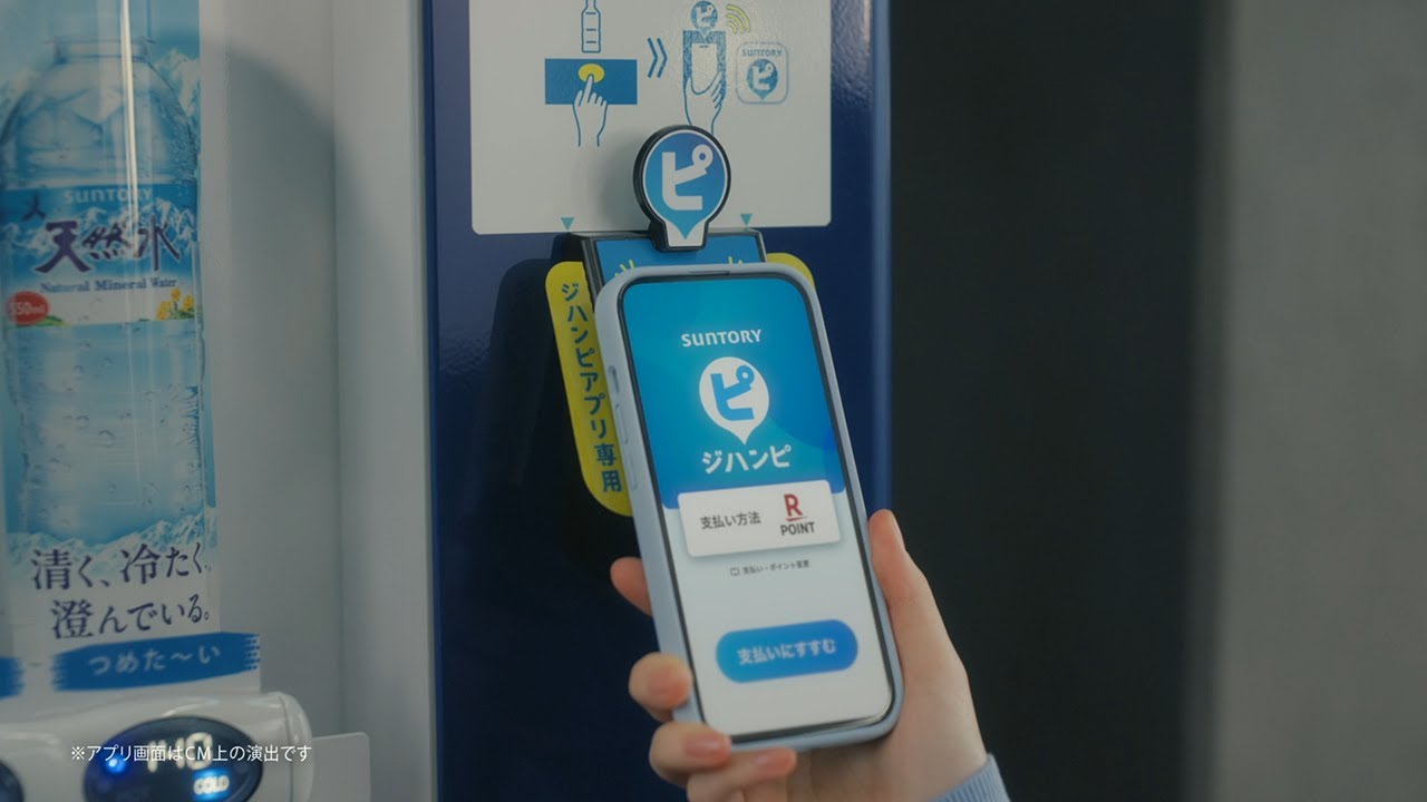 サントリーの自販機キャッシュレスアプリ、ジハンピ