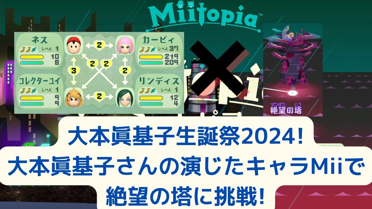 大本眞基子生誕祭!大本眞基子さんが演じたキャラMiiでミートピア(Miitopia)の絶望の塔に挑戦配信です!