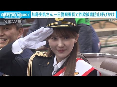 日向坂46の元メンバー・加藤史帆さんが東京・練馬署の一日警察署長を務め、相次ぐ特殊詐欺の被害防止などを呼び掛けました。