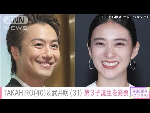 EXILEのTAKAHIROさんと俳優の武井咲さんが2日、第3子となる女児の誕生を発表しました。