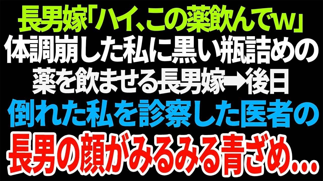 「長男嫁が『ハイ、この薬飲んでw』と渡してきた黒い瓶詰めの薬。その後、私は倒れて病院に運ばれ、診察した医者の顔が急に青ざめる。なんと、その医者が長男だった!その後の展開に驚愕の事実が…!」