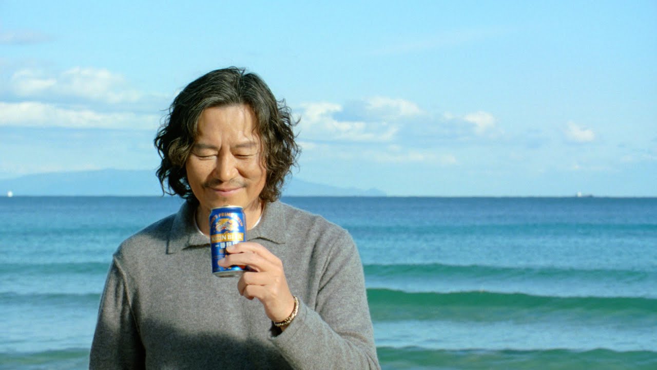 海でおいしそうに“糖質ゼロビール”飲む二人の表情は必見です。