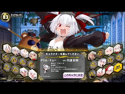 3)右下の「エボルグリムセレクトへ」を押す→2クレ以上したキャラの「グリムキャラ」が選べるのでそれを選ぶ(※着せ替えはできません)