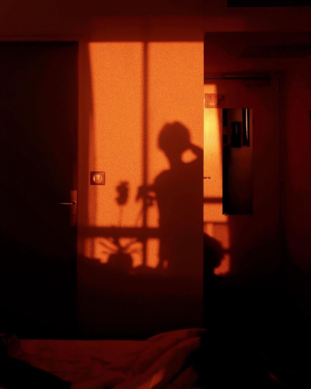 #朝日でお部屋が真っ赤っか