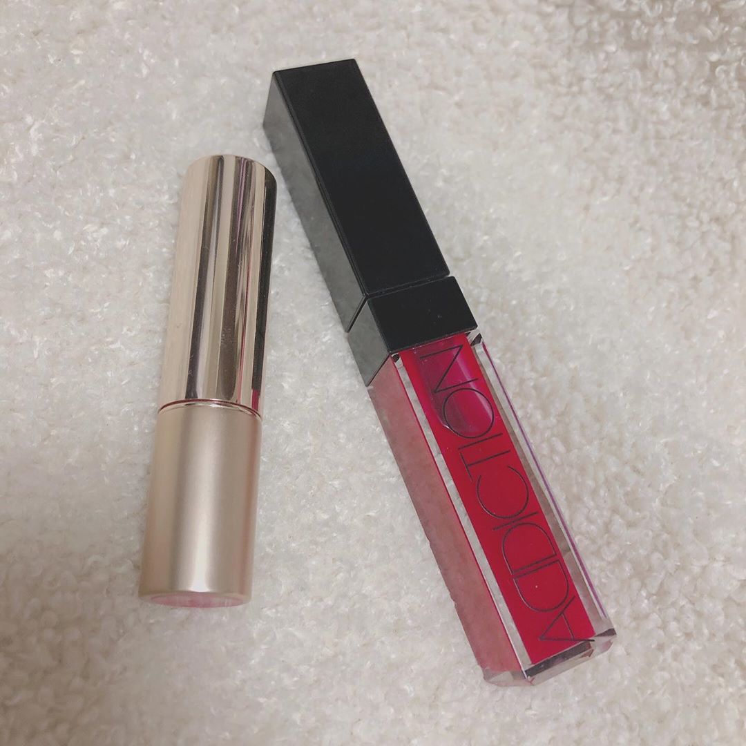 この日のリップはオペラのリップティント06番とADDICTIONのリップグロス04番を重ねてるよ🥰