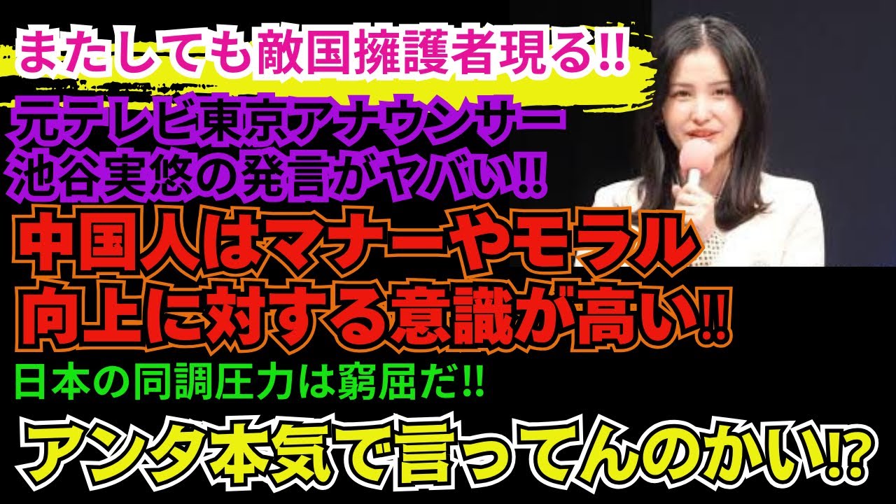 【元テレ東アナ発言がヤベェ】池谷実悠が「中国人はマナーやモラル向上に対する意識が高い」と敵国を擁護発言がXではとんでもないことに‼日本の同調圧力は窮屈だ!本質を理解していない発言がマジで痛すぎる