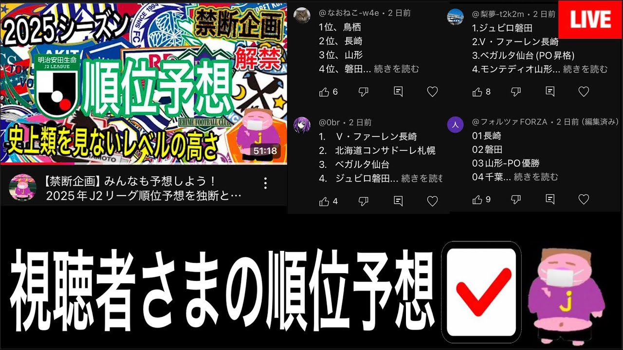 【開幕前のリアルな期待度調査】2025シーズンJ2リーグ順位予想コメントを徹底☑するお時間でございます。