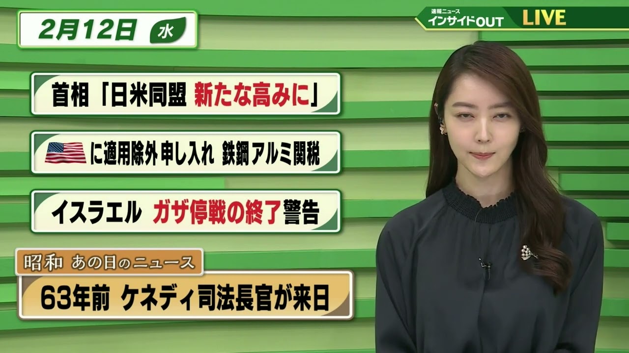 【今日のニュース 2月12日】「首相 “日米同盟 新たな高みに”」「米国に適用除外申し入れ 鉄鋼アルミ関税」「イスラエル ガザ停戦の終了警告」「昭和あの日のニュース ケネディ司法長官が来日」BS11