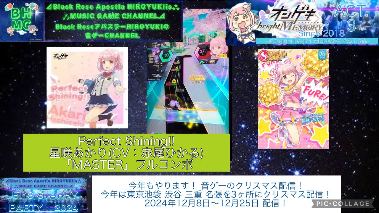 オンゲキbrightMEMORY ACT.3』Perfect Shining!! 星咲あかり(CV:赤尾ひかる)「MASTER」フルコンボん 続いては、星咲あかり Perfect Shining!!です。 告知 今年もやります! 音ゲーのクリスマス配信! 今回は東京池袋 渋谷 三重 名張を3ヶ所にクリスマス配信! 今回も今年1年印象に残った曲やライブで披露された曲も一挙配信! 2024年12月8日〜12月25日 配信! 12月8日 10時30分 スタート! female voice actorsvoice actorsvoice actresses声優女性声優赤尾ひかる Write A Commentコメントを投稿するにはログインしてください。